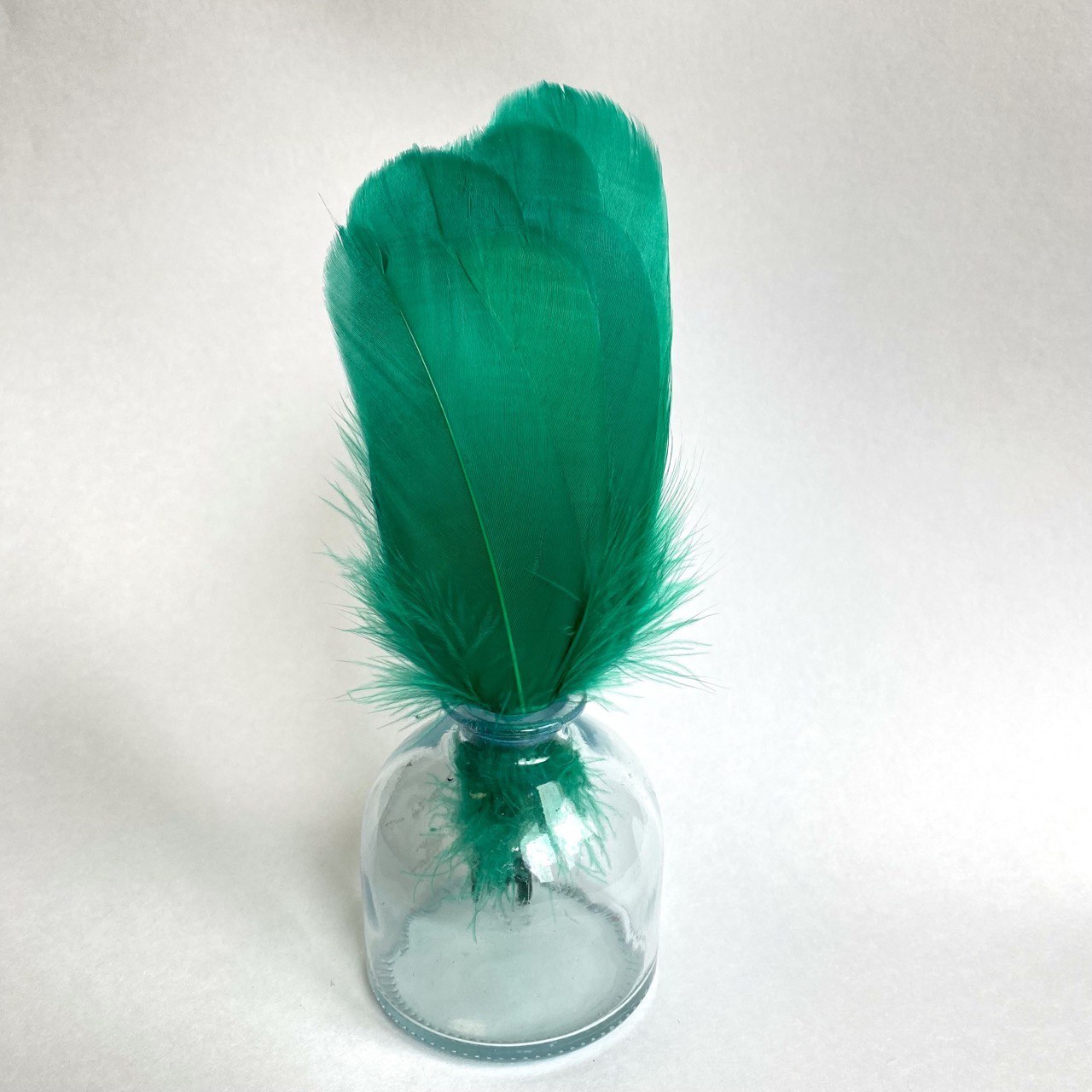 Насыщенный зеленый цвет. Некоторые перья могут быть полосатыми из-за особенностей сборки.