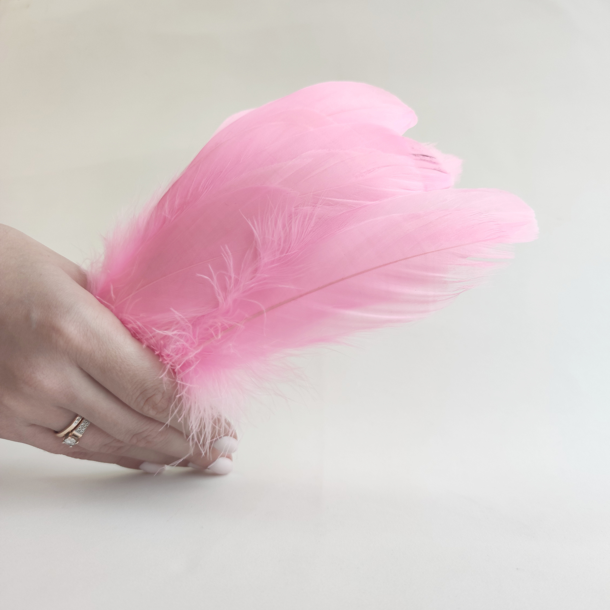 Купить гусиные перья розовые 2 сорт в упаковках по 100 шт.