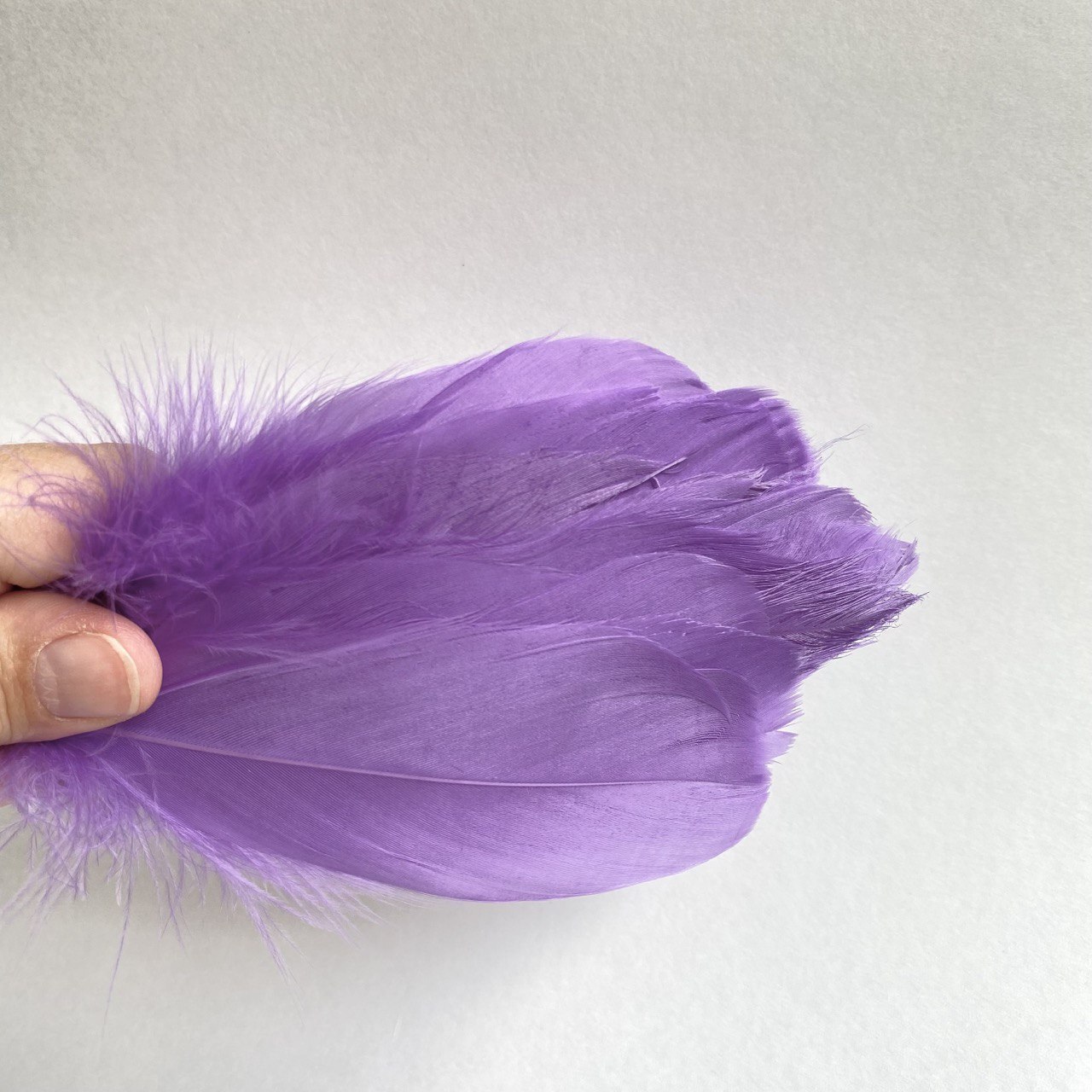 Купить гусиные перья темный аметист 2 сорт скругленные в упаковках по 20шт.