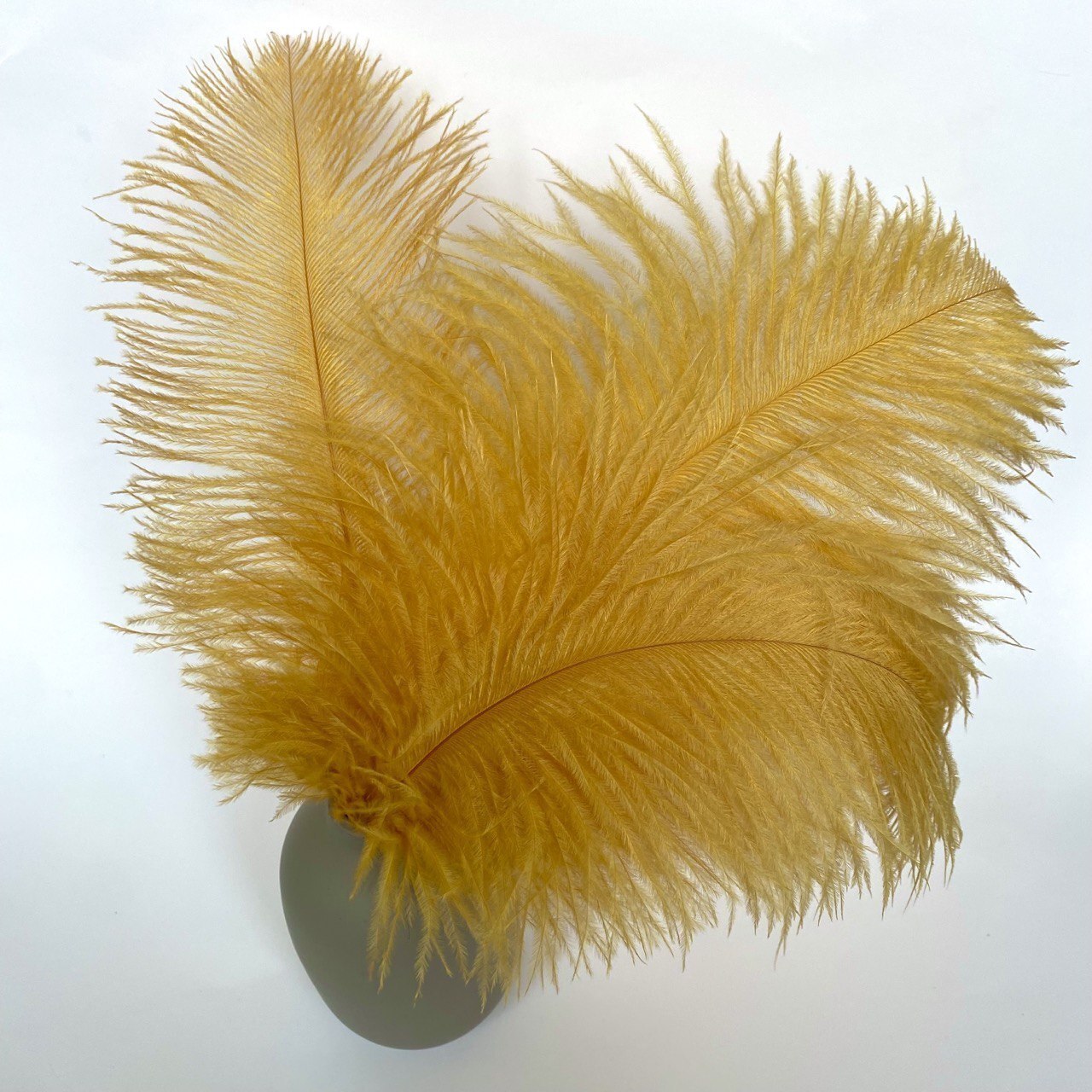 Купить перо страуса золотое 30 - 35 см. поштучно.