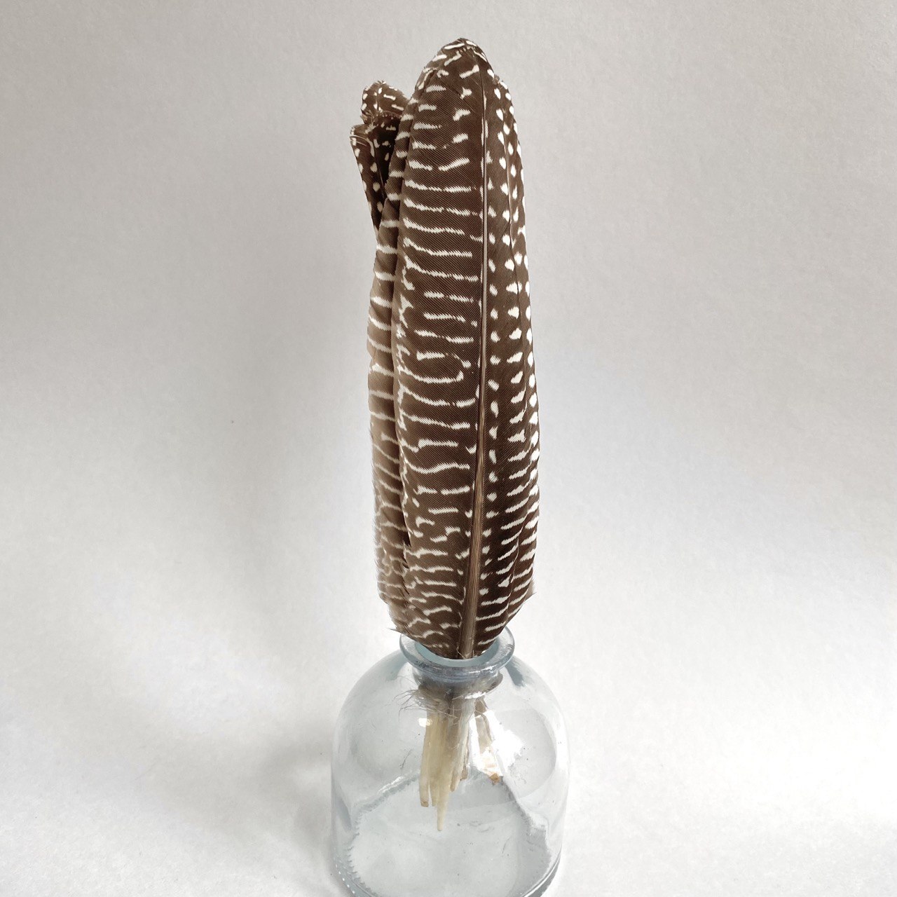 Купить перо цесарки натуральное коричневое 20 - 23 см. поштучно.