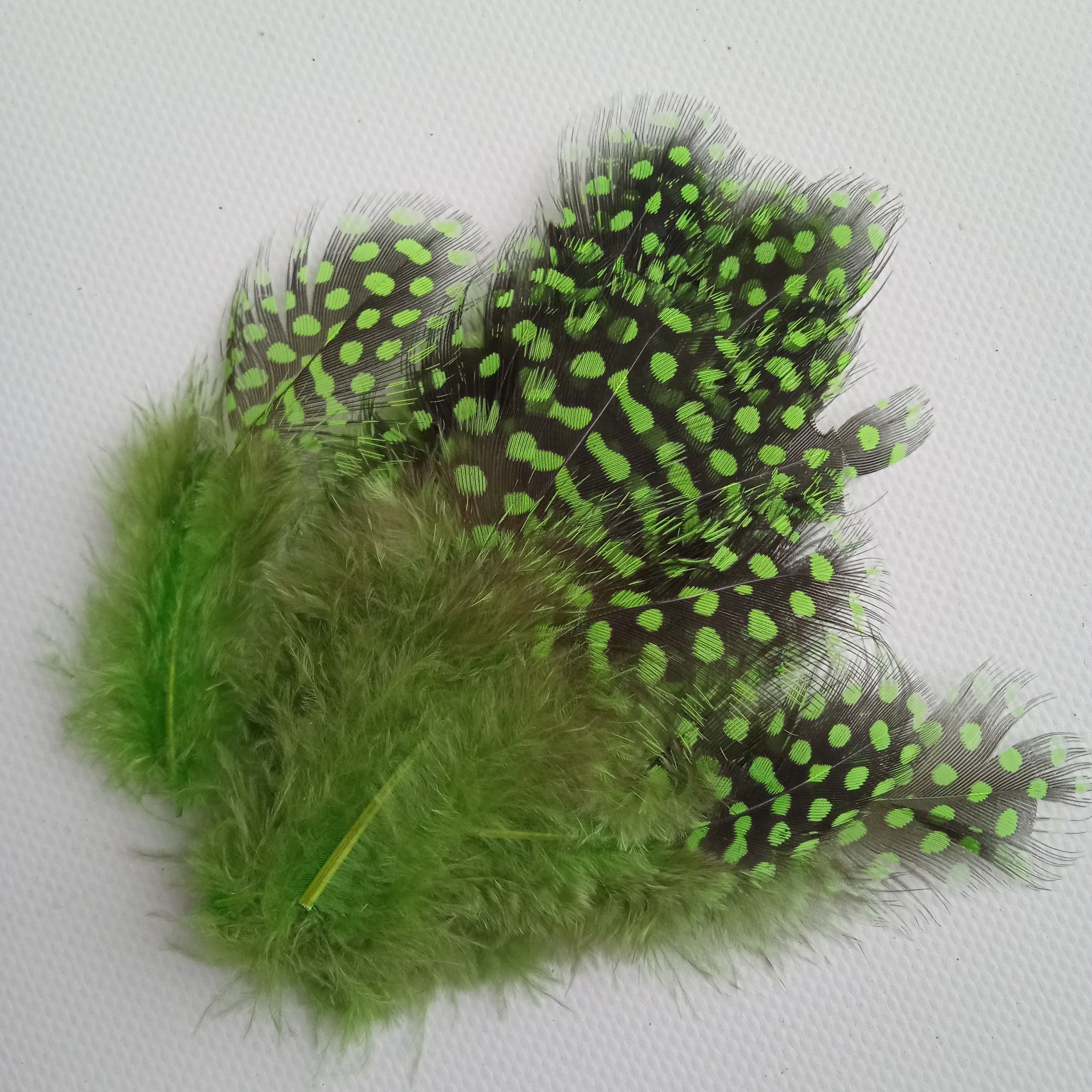 Купить перья цесарки салатовые в упаковках 2 сорт 15 шт.